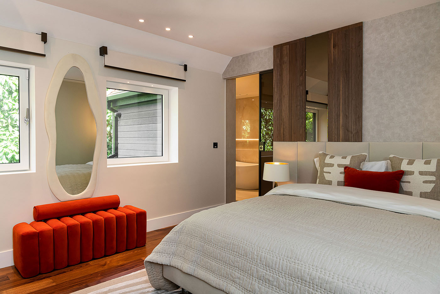 For this sophisticated residence, which draws inspiration from Middle Eastern design principles, every architectural and decorative gesture has been made with intention. Rich walnut finishes, sculptural lighting, plush textiles and curated artwork all contribute to a palette that feels grounded in tradition, yet distinctly modern. Our role in the project was to supply and install luxury blinds that would enhance and compliment the interiors.