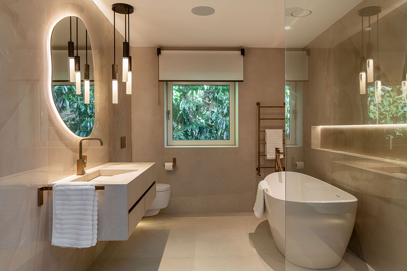 Every blind was made to measure for a precise architectural fit, with fabric selections chosen for their ability to filter light or dim-out the room, and complement the surrounding finishes. Moisture-resistant materials were introduced in bathrooms and spa areas, ensuring both continuity and durability across all spaces.