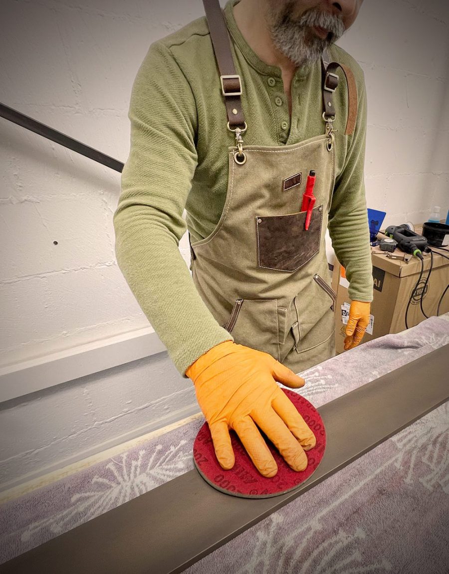 The HeritEdge finishes are created through a meticulous multi-stage process that transforms each surface into a crafted detail. After careful preparation and priming, fine layers of real metal are applied, with patinas worked by hand to build depth and variation. Each piece is then polished to reveal the unique tones and textures of bronze, brass, or iron. Developed entirely in-house, this process blends precision with artistry, resulting in finishes defined by richness, tactility, and individuality.