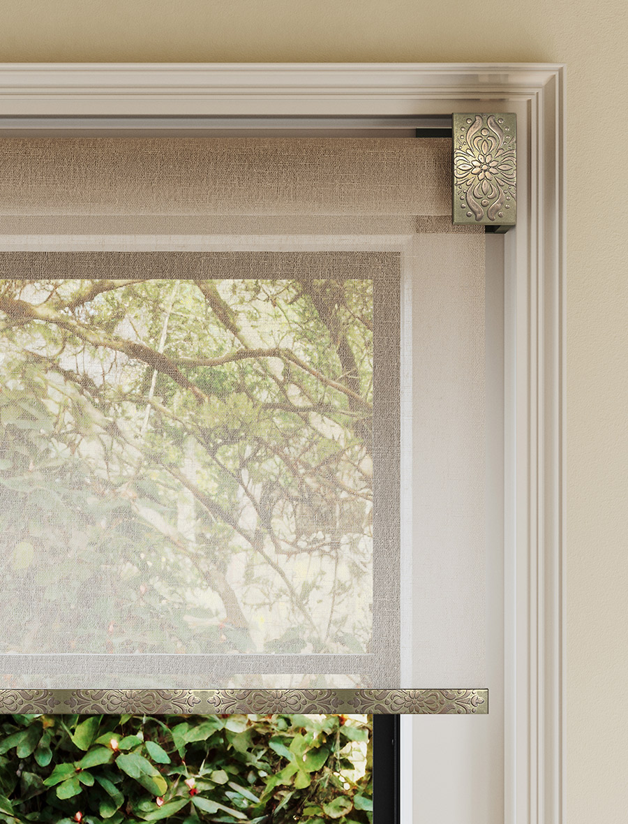 The VENESTRE hardware range, including roller blind corner brackets, fascias, hem bars, and curtain tracks, is available in a selection of finishes such as anodised, lacquered, and liquid metal. Bespoke and artistic treatments can also be provided for distinctive applications. The finishes are considered as the defining touch that brings each design to life.