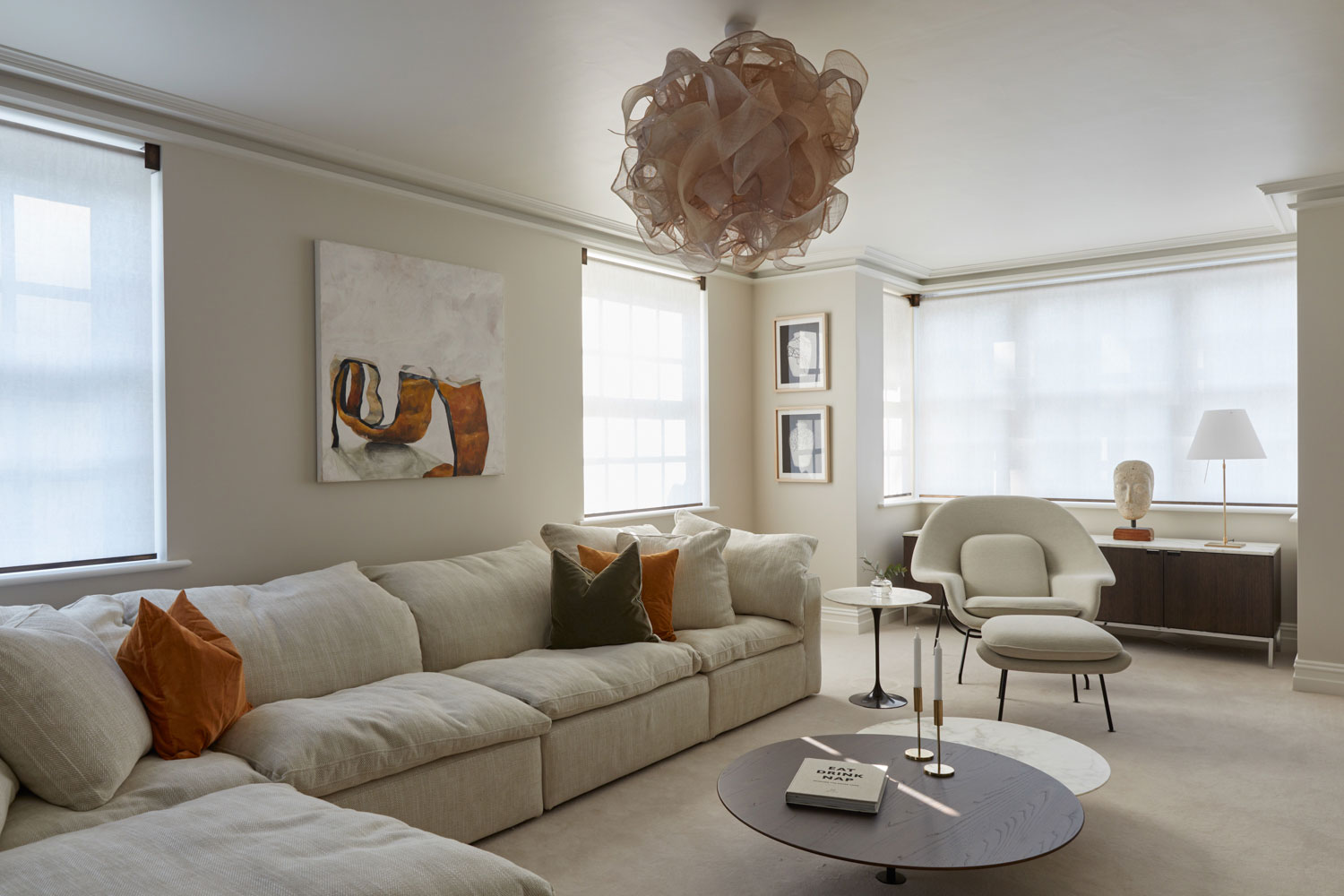 From soft, flowing curtains to precision-fitted roller blinds, the window treatments throughout the home reflect the highest standards in bespoke design. Each room has been furnished with well considered solution that compliments architecture while providing comfort and ease of use.