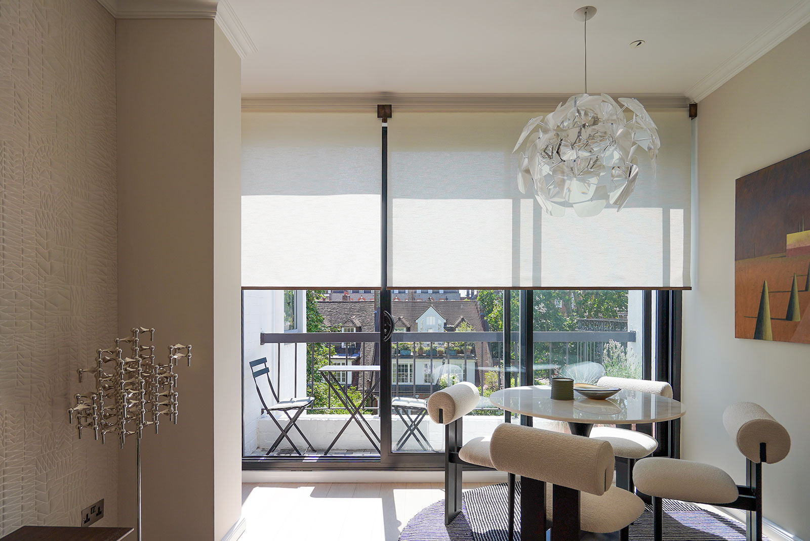 This Chelsea apartment showcases how carefully designed luxury apartment roller blinds can transform interiors. Every blind was chosen to deliver both performance and style, creating minimal elegant window treatment solutions that enhance the apartment’s calm, contemporary character. A perfect balance of bespoke design and modern convenience.